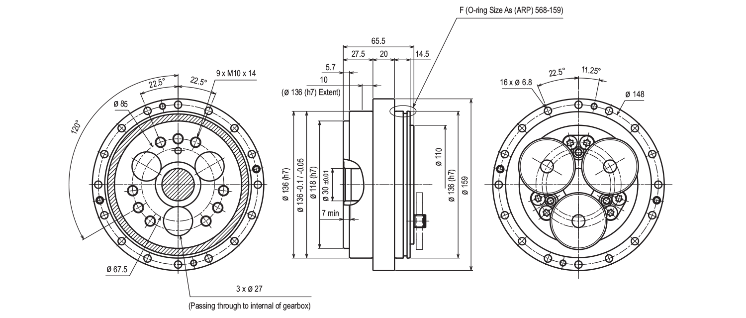 The reduction ratio i, which is the sum of the 1st and 2nd reduction parts, differs between output flange rotation and frame rotation.