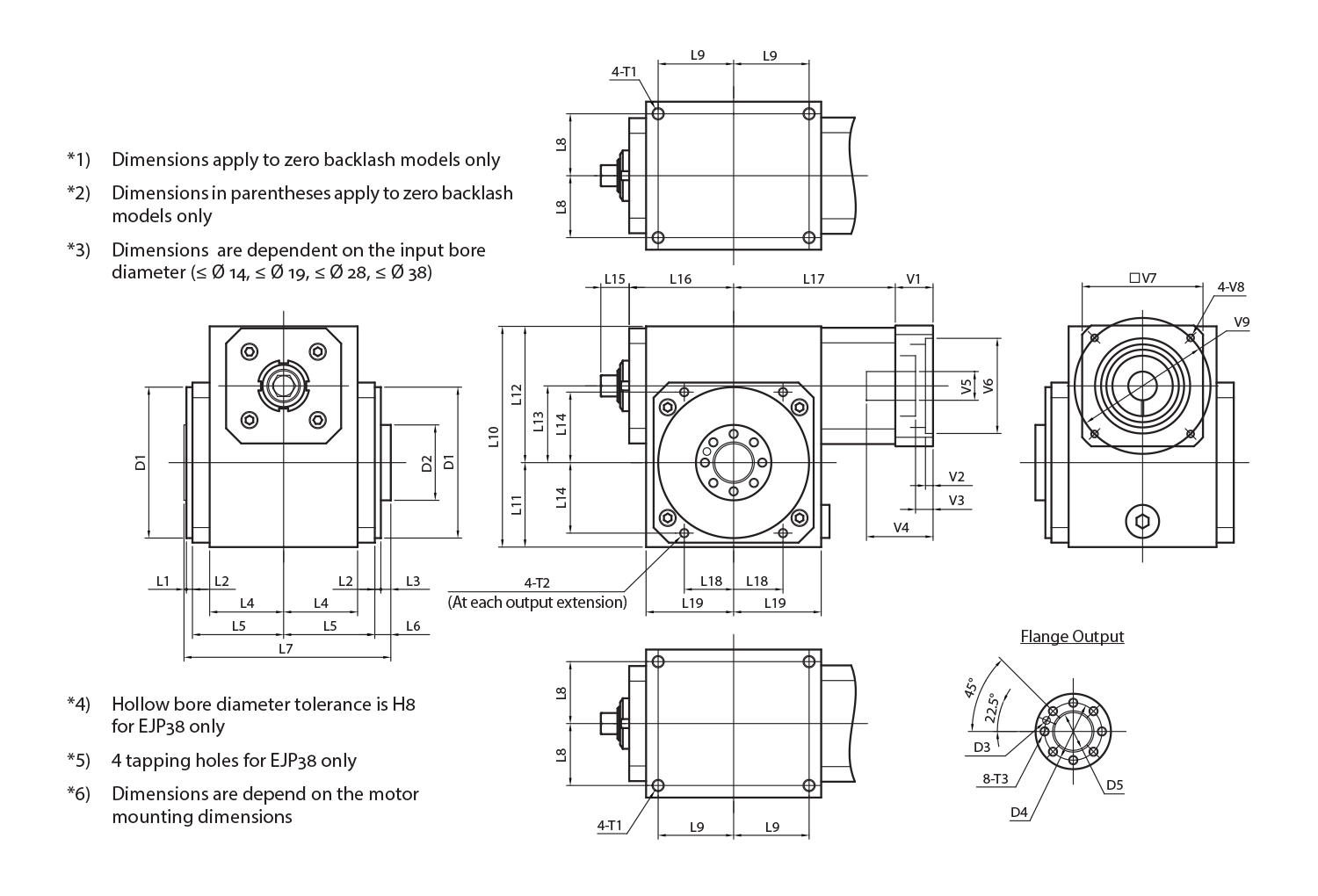 | V1 ~ V9 | [mm] | *6 | Motor attachment dimensions are made to fit your servo motor. |