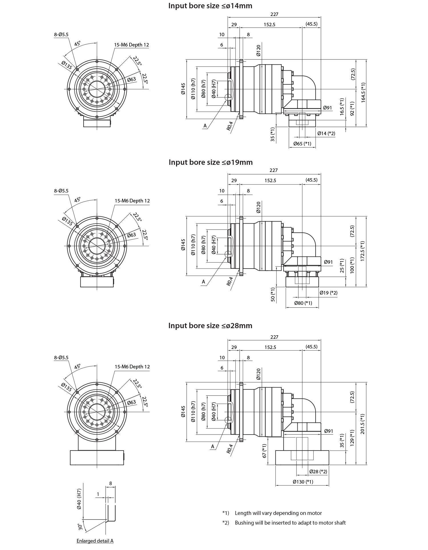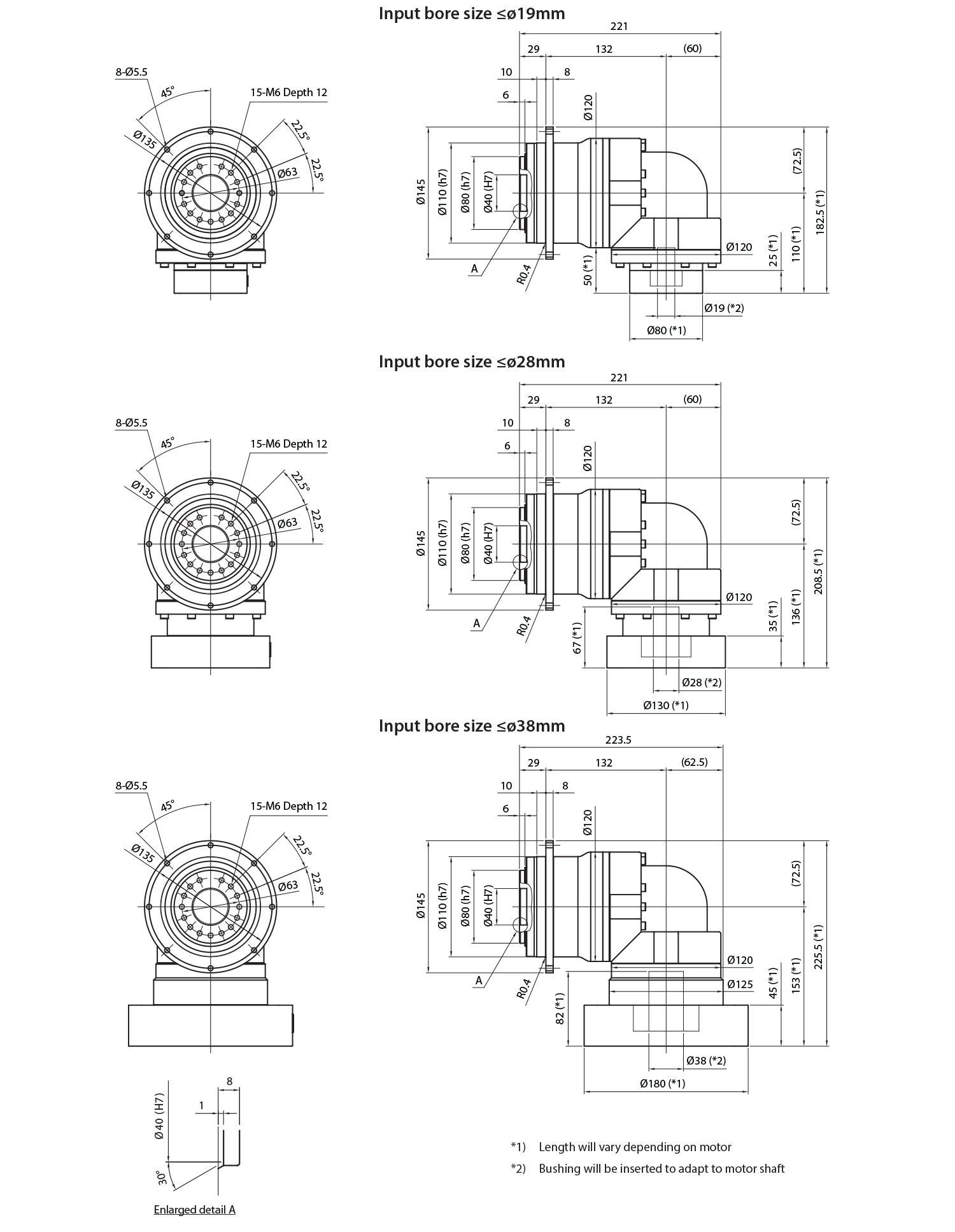 Our motor mounting codes can be configured automatically using our online selection tool. These tables supply the details behind these codes. The tables start with Input Bore measurement and the Part # Code, which are indicated at the end of every model code.