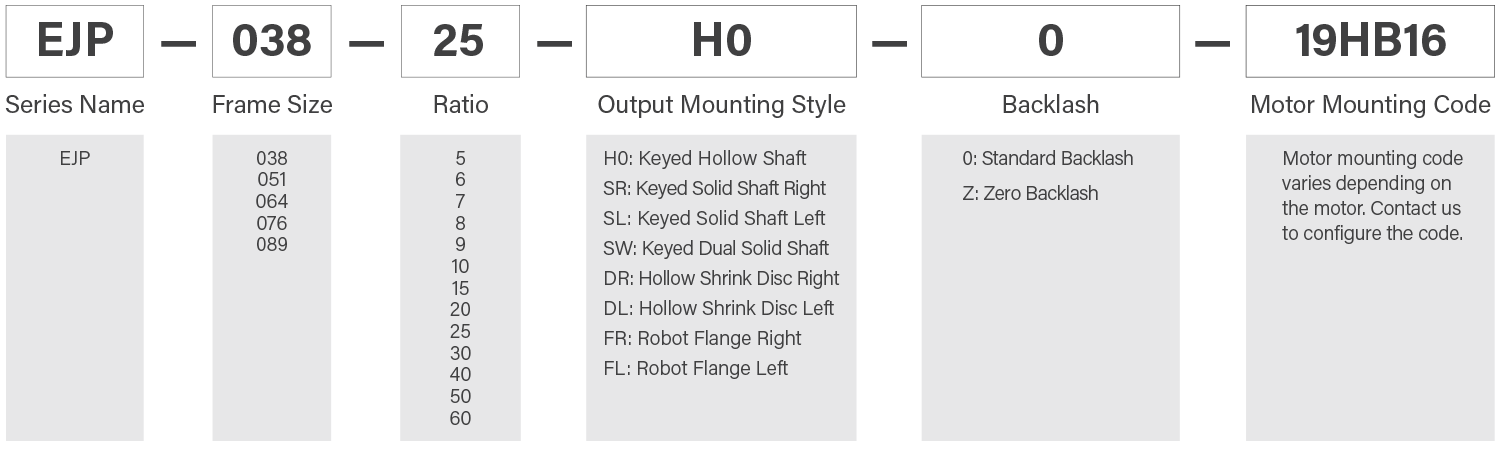 The EJP series is ideal for demanding applications requiring high efficiency, torsional rigidity and zero backlash. It’s lightweight, black anodized aluminum housing and dual input/output seals allow for excellent environmental protection with minimal maintenance. The EJP is part of our modular design platform, which means it can be mounted to any servomotor manufacturer with ease.
