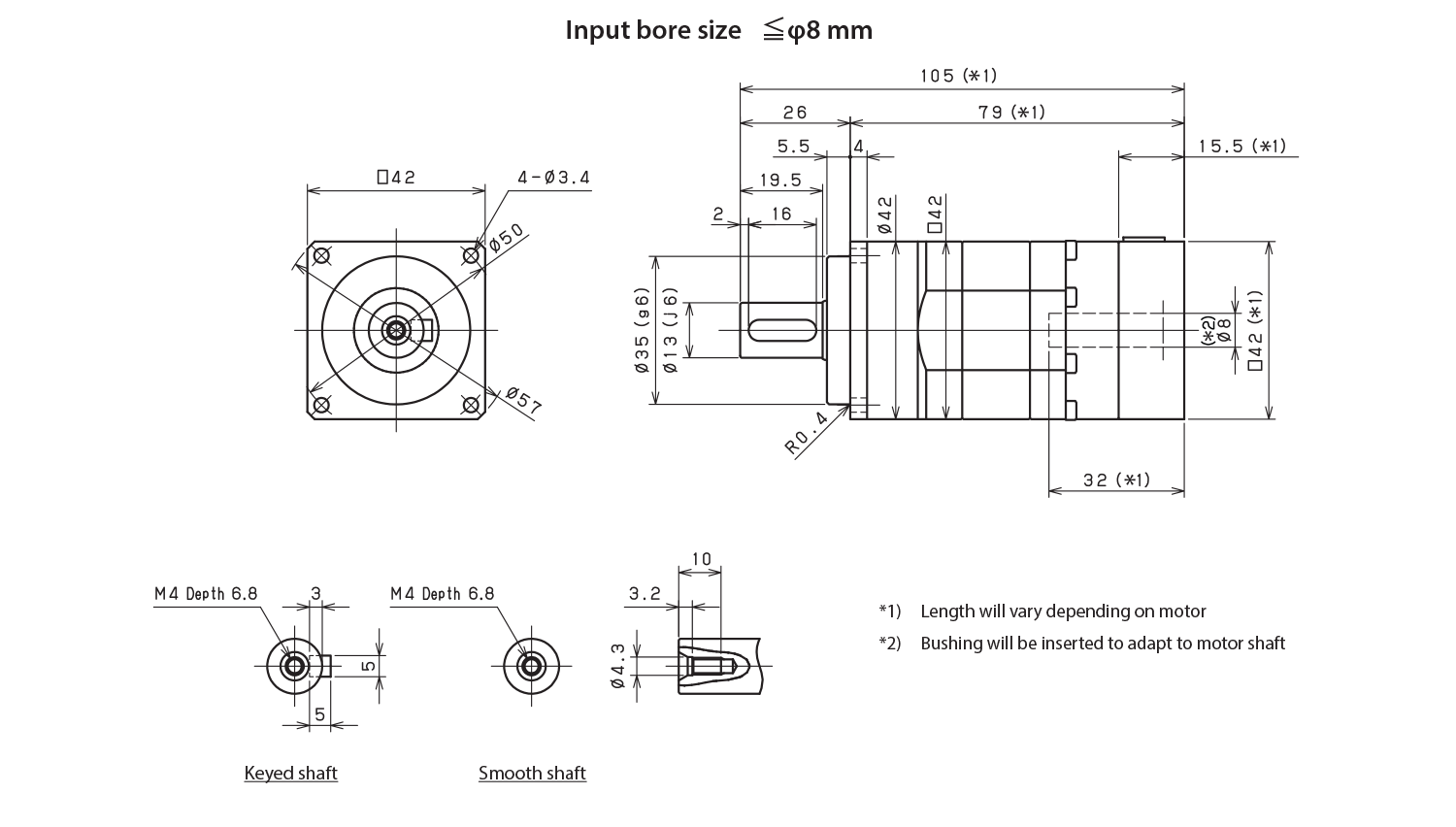• Output Shaft Materials of Construction & Modifications: 300 Series Stainless, 400 Series Stainless, 17-4PH Stainless, Nickel Plating, Special Width, Special Length
