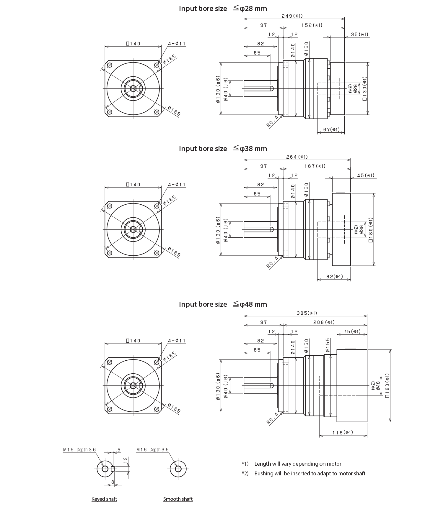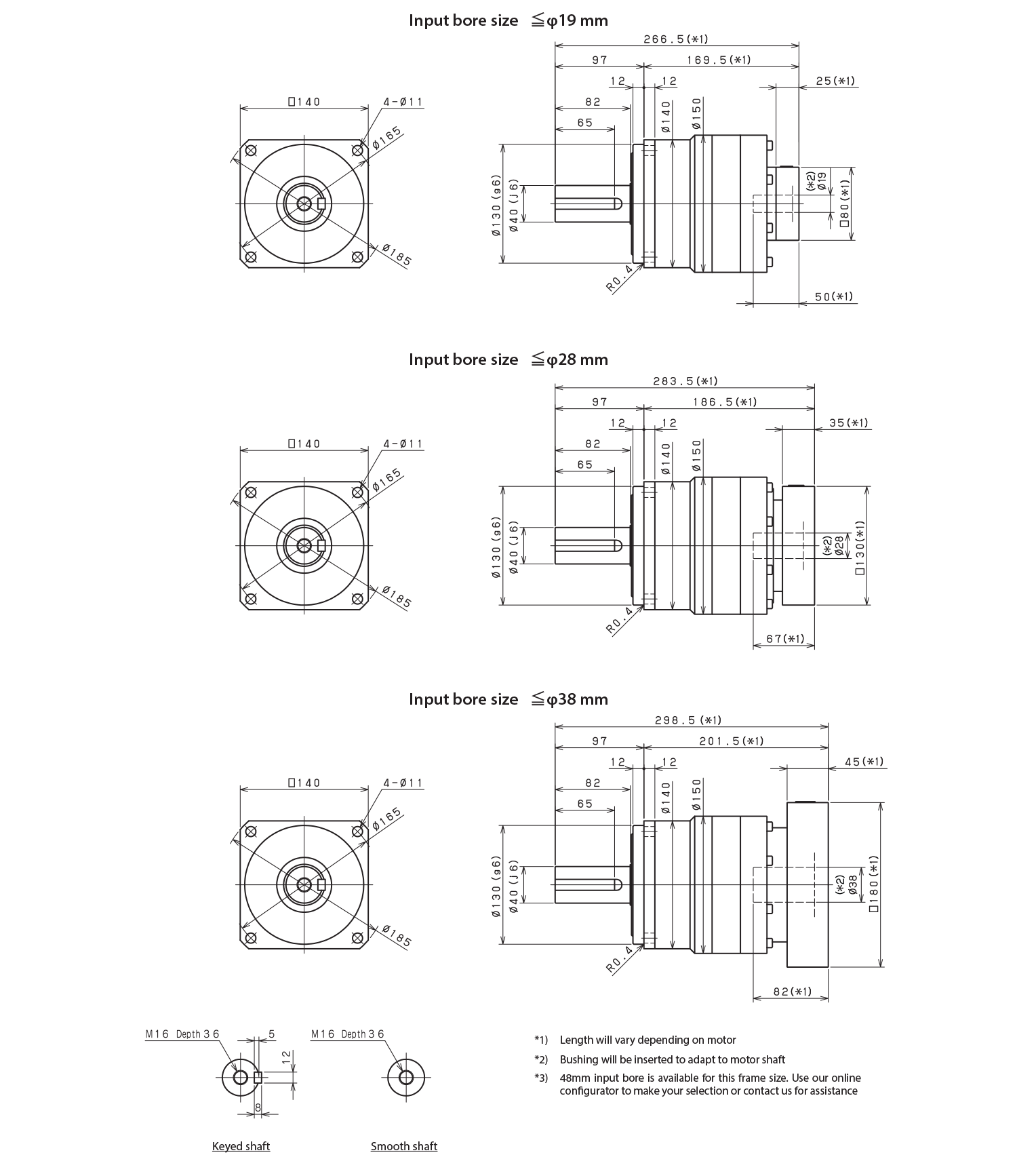 Our motor mounting codes can be configured automatically using our online selection tool. These tables supply the details behind these codes. The tables start with Input Bore measurement and the Part # Code, which are indicated at the end of every model code.