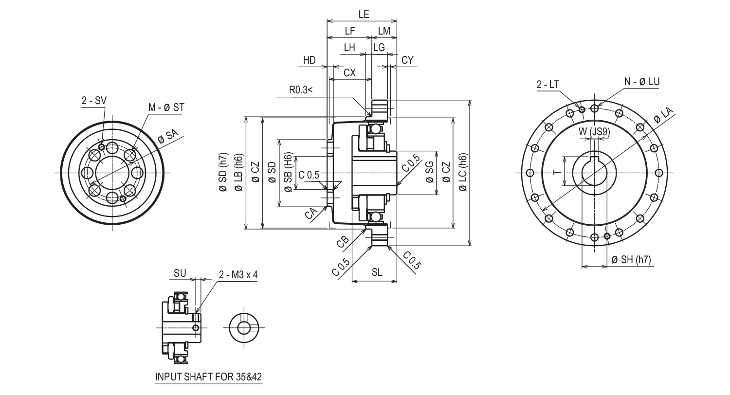 | Frame Size | LA | LB | LC | N | LU | LT | LE | LF | LG | LH | LM | SG | SH | SL | W |