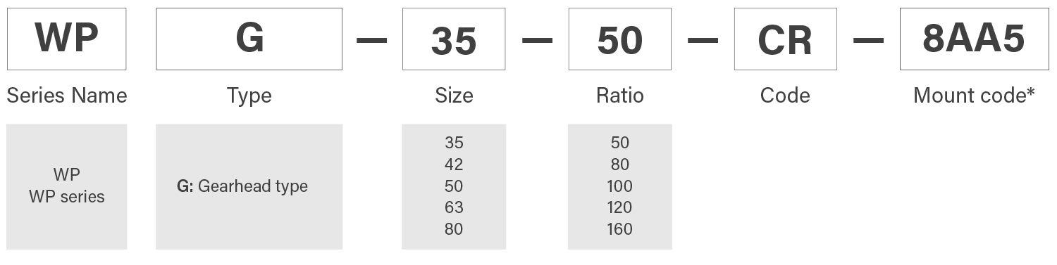 * Mount code varies depending on the motor selection. Please refer to the ‘Reducer Selection Tool’ found on our website for further details, or alternatively please contact us for more information.