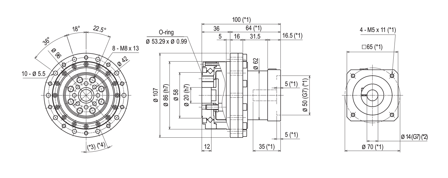 WPG-63-□-CR-14-□ (< 8 Input shaft diameter ≦ 14) Dimensions