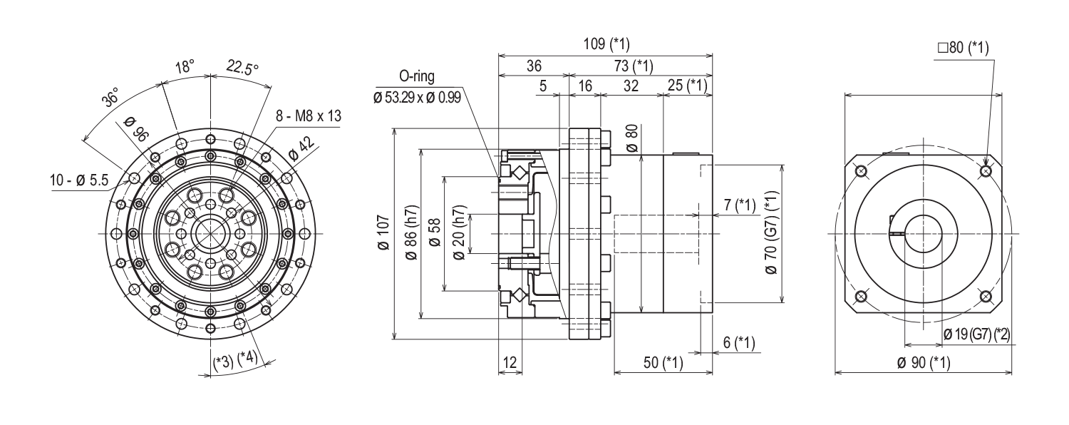 WPG-63-□-CR-19-□ (< 14 Input shaft diameter ≦ 19) Dimensions