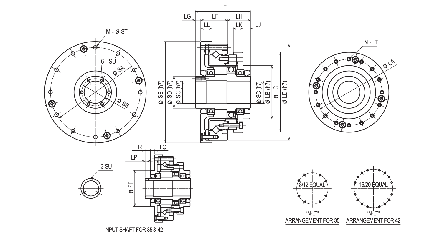 | Frame Size | SA | SB | SC | SD | SE | SF | M | ST | SU | N | LT |