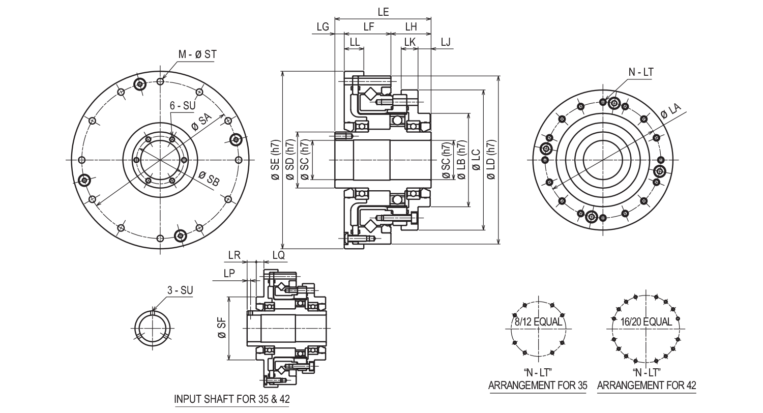 | Frame Size | SA | SB | SC | SD | SE | SF | M | ST | SU | N | LT |